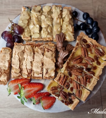 Trochę spóźniony post, do zapamiętania na przyszły raz. W zeszłym roku obyłam się bez mazurka, więc w tym postanowiłam uiec aż trzy :). Jeden klasyczny, z kajmakiem i marmoladą porzeczkową. Drugi z dżemem morelowym i pianką z migdałów. Trzeci, najprostszy, z lemon curdem, pekanami i rodzynkami. Mazurki piekłam w formie do tarty o wymiarach 35cm […]